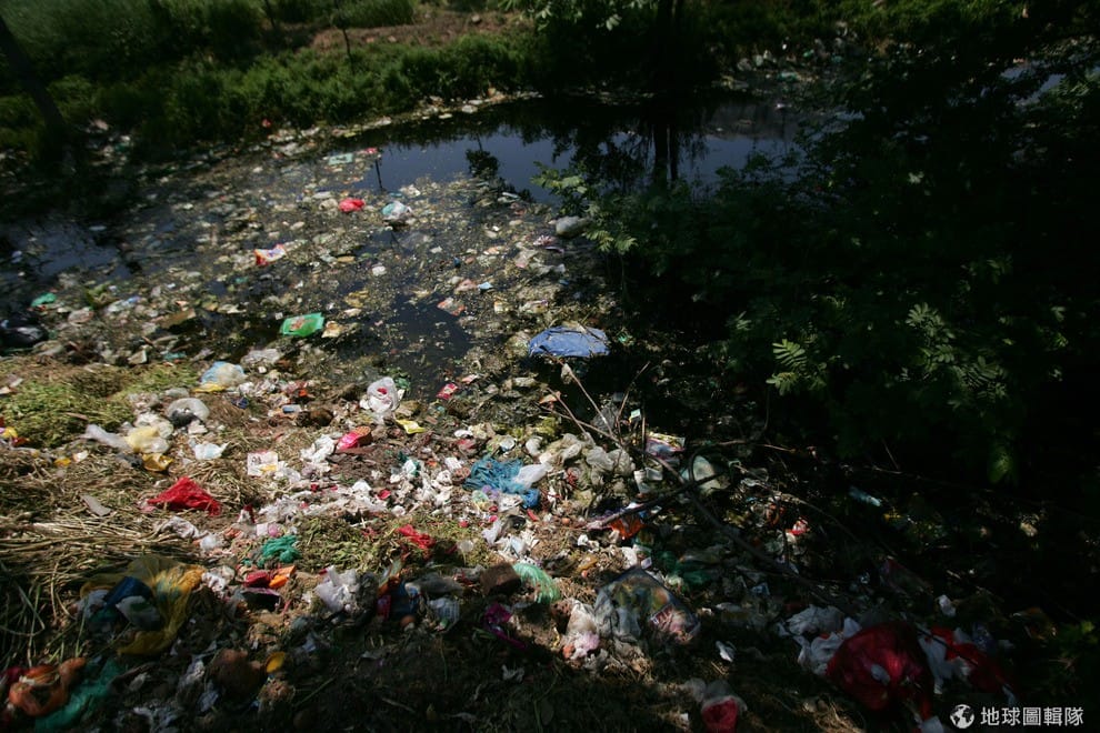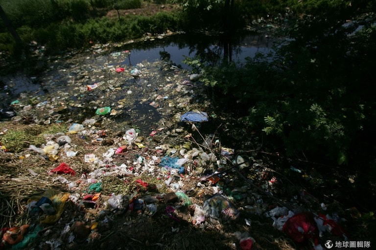 安徽省郊外的一處河邊,滿是垃圾。China Photos/Getty Images