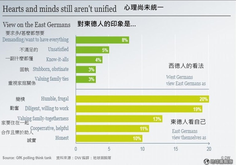從調查可以知道東德和西德民眾對彼此的印象仍有些落差。