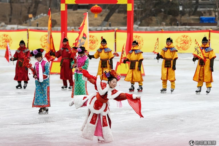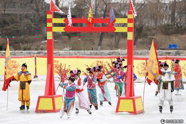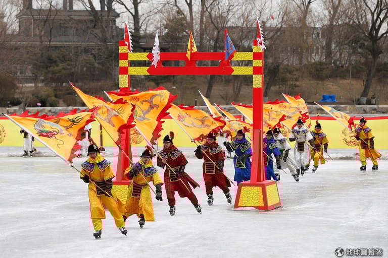 清朝時期,當時的八旗兵除了保家衛國之外,也要熟練溜冰技術,這項技巧在日後加入表演性質,便成了有名的「冰嬉」表演。Lintao Zhang/Getty Images