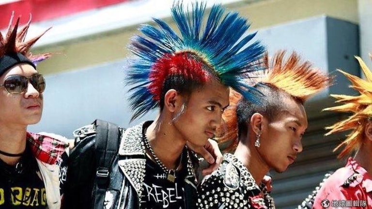 近年來,在緬甸街頭都可以看到打扮吸睛的龐克族,他們留著顯眼的龐克頭,穿著鉚釘皮夾克,身上刺著骷髏頭和十字架。