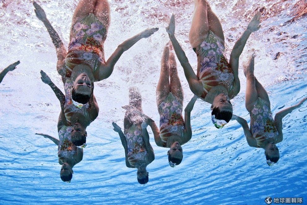 世界游泳錦標賽(Aquatics World Championships)中,義大利隊的隊員在水裡表演水上芭蕾。