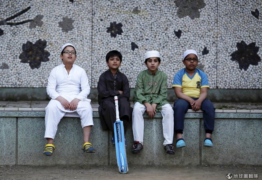 日本小樽附近的公園裡,穆斯林小朋友正看著其他孩子玩耍。