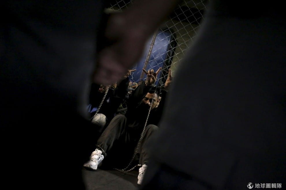 槍戰過後,野蠻薩爾瓦多人犯罪幫派(Mara Salvatrucha,簡稱MS-13)的成員坐在地上比出手勢。MS-13的敵對幫派搶走了監獄警衛的槍,接著瓜地馬拉市最高法院的地下室發生了槍戰,造成MS-13的三名成員在槍戰中受傷。