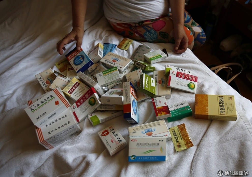 照片中是兒子坐上MH 370班機的李太太,她給路透社記者看她和先生在飛機失蹤半年後兩夫妻因為生病吃下的藥量。