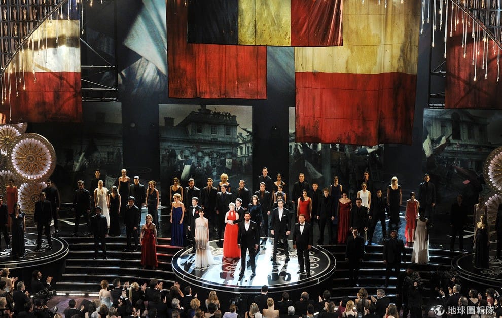 gettyimages電影《悲慘世界》演員也齊聚獻唱。這部電影讓安海瑟薇拿下最佳女配角獎。Kevin Winter/Getty Images