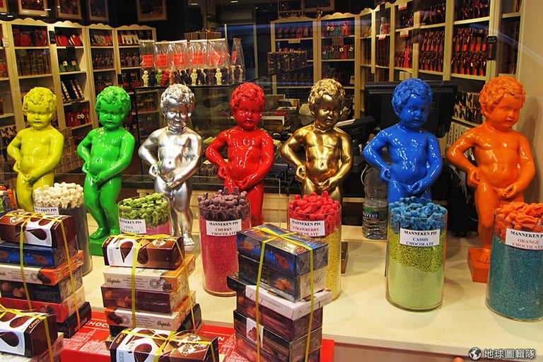 比利時的巧克力店看準尿尿小童的超人氣,推出不少它的巧克力商品吸引買氣。Photo credit: Andrew Gustar