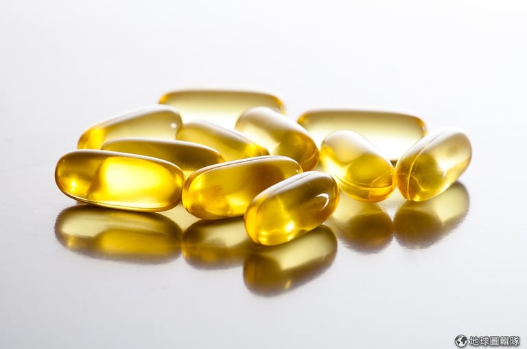 一顆顆晶瑩剔透的深海魚油膠囊含有豐富的不飽和脂肪酸Omega-3。Photo credit: Jo Christian Oterhals