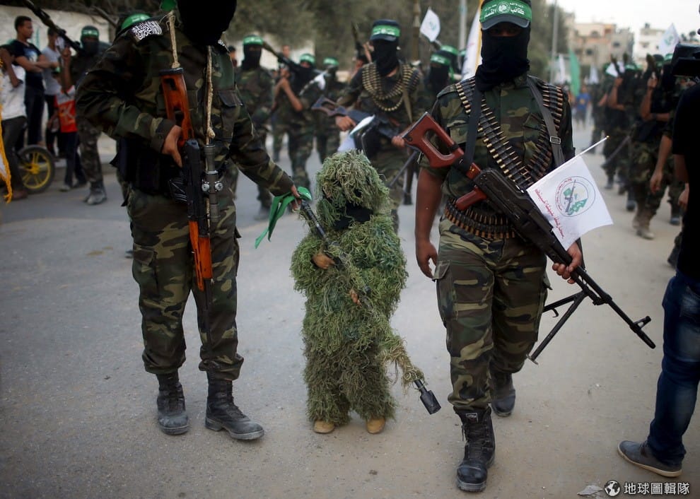 首圖故事:一名以雜草作掩護的小男孩拿著武器參加遊行...