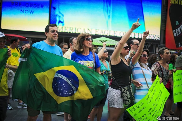 數萬名民眾在巴西各地大聲抗議,要求巴西總統羅賽夫(Dilma Rousseff)下台,因為他們認為羅賽夫應該要為巴西嚴重的貪腐和經濟問題負責。