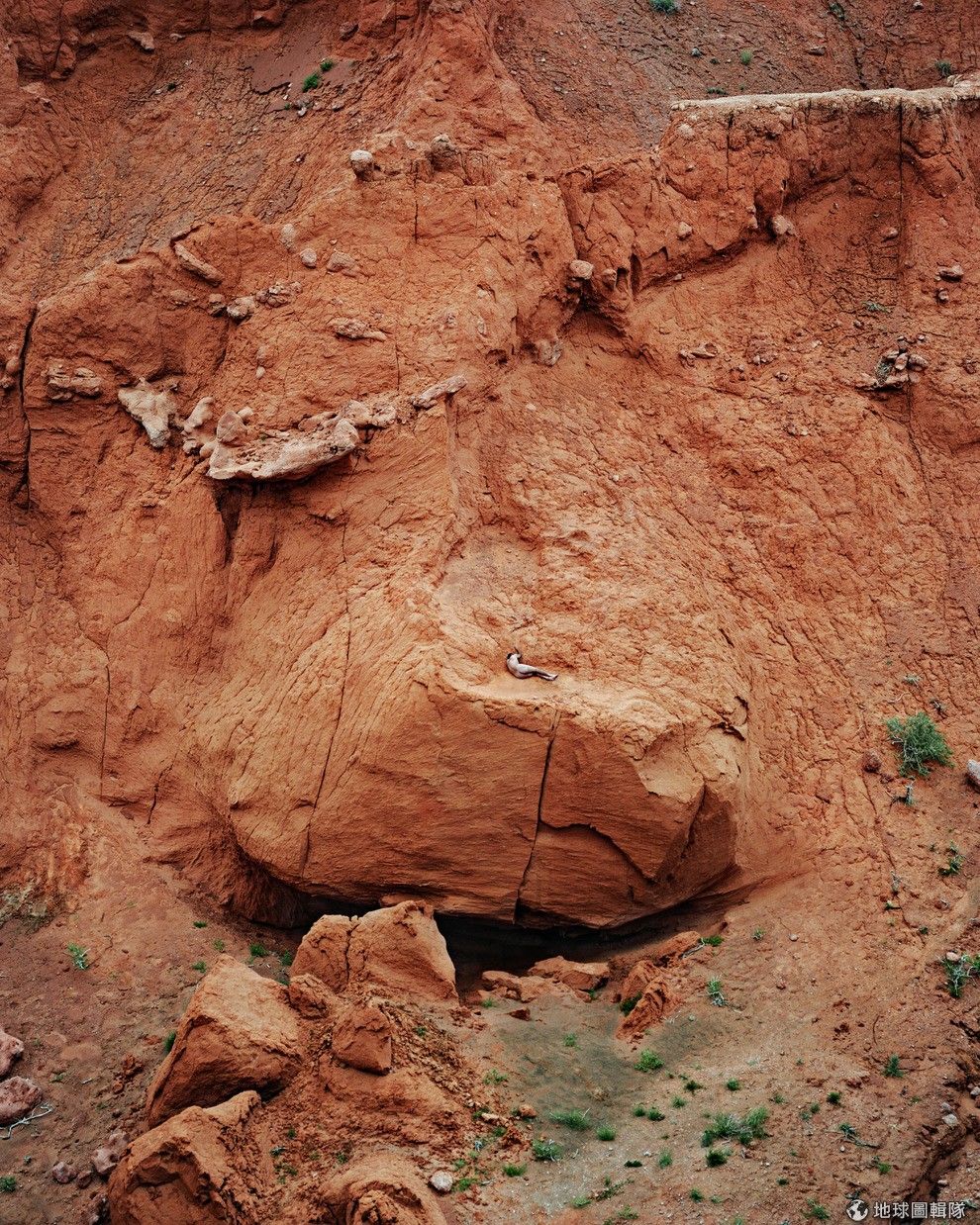 躺在蒙古的巨岩面前,人類顯得異常渺小。Photo credit: Ruben Brulat
