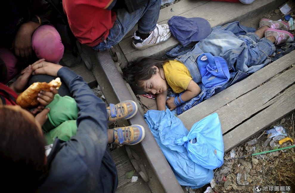 4歲的拉須達(Rashida)靜靜地睡在鐵軌上,他與其他來自敘利亞邊境的難民想要到西歐展開新生活,他們人數超過約千人,預計透過希臘與馬其頓共和國交界處的鐵路一路往其他歐洲國家移動。
