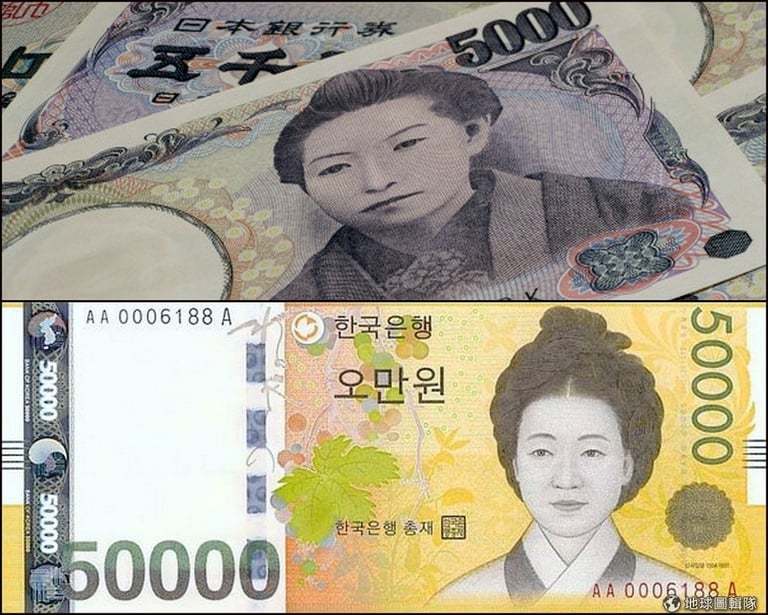我們鄰近國家中,日本五千元的人物肖像是樋口一葉,韓國五萬韓圜是申師任堂;順便一提, 五千韓圜的人物李珥就是她的兒子,母子同時登上鈔票封面。