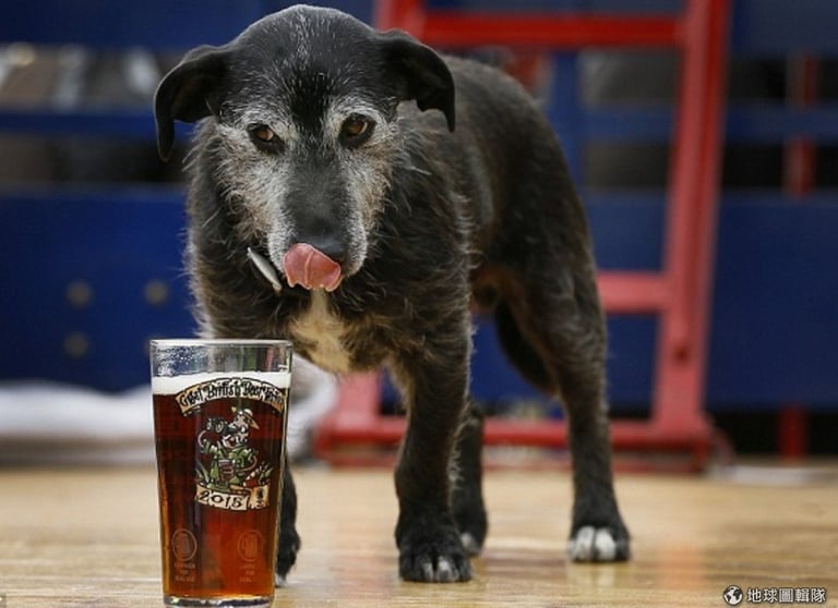 巴尼是英國啤酒節開幕儀式上的特別來賓,牠對啤酒的喜好從牠的表情就可以了解。 取自網路