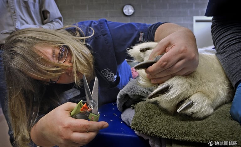 首席獸醫師凱倫(Karen Wolf)正在幫波里斯剪指甲。Dean J. Koepfler/Tacoma News Tribune/MCT via Getty Images