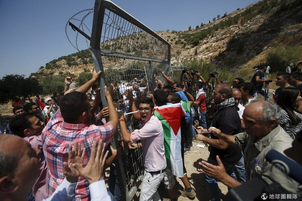 巴勒斯坦西岸的伯利恆當地,可以見到巴勒斯坦民眾正在抗議,他們想合力把擋在路中的障礙物搬走,根據當地民眾表示,他們不滿以色列政府沒收部分土地,於是發起抗議行動。