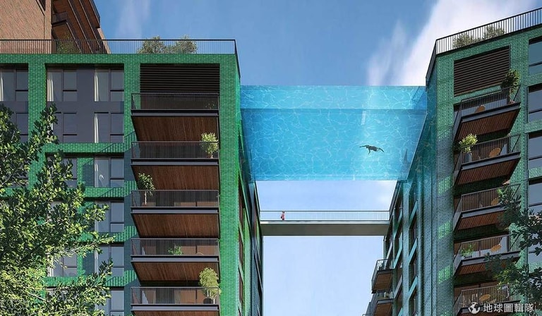天空泳池並不對大眾開放,只有兩棟建物的住戶可以享受悠游在空中的感覺,每一戶起價從 60萬英鎊(折台幣約 3,144萬元)開始,預計最快在 2018年天空泳池就能正式啟用。