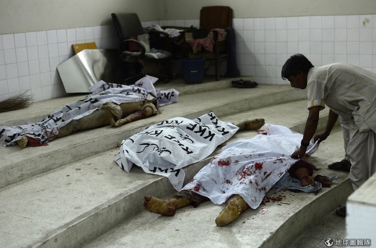 BBC報導,巴基斯坦最大城「喀拉蚩」的一間清真寺發生嚴重的炸彈攻擊,目前已知有45位居民不幸喪生。由於爆炸的威力強大,清真寺周邊的建築物也因為波及而倒毀起火,當地救難人員必須摸黑在斷垣殘壁中找尋傷者,加入就難行動的居民也用車燈照亮碎石斷瓦,希望能協助加快救援。居民Mariam Bibi接受記者訪問,她親眼目睹受害者「被大火燒得不停慘叫、孩子們倒在血泊中、女人全尖叫著找親人…」。