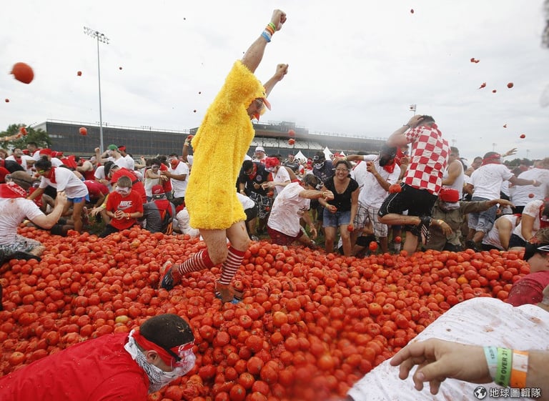 《德國之聲》報導指出,今年番茄節(西班牙語:La Tomatina)適逢七十周年,主辦單位也不手軟地準備了 170噸重的番茄讓大家砸個痛快,放眼望去,開打的活動街道上已經被番茄糊淹沒,豔紅一片。