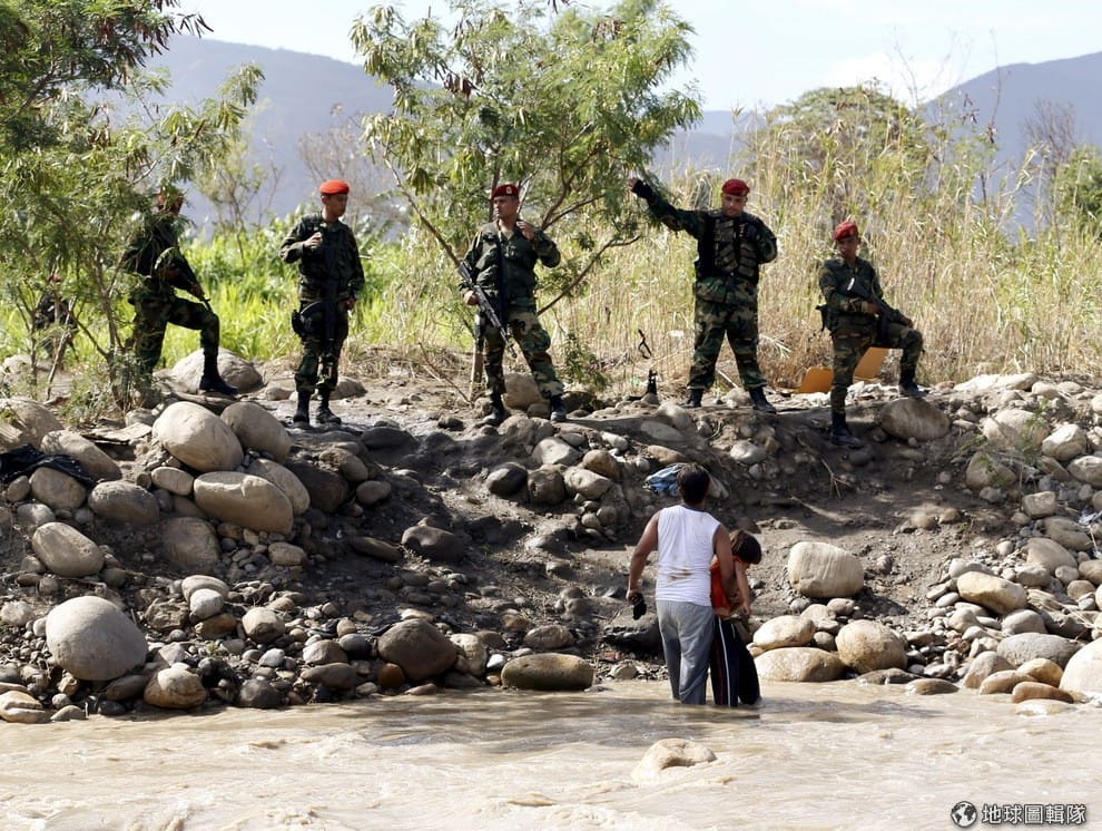 委內瑞拉警察舉手示意,不准一對父子上岸入境。 8月19日時,武裝分子在委國和哥國邊境襲擊委內瑞拉國民警衛隊,並開槍打傷 3名軍人和一位平民,這引發委國總統馬杜洛(Nicolas Maduro)宣布無限期關閉邊界,並表示與哥倫比亞交界的五個邊境城市進入緊急狀態,他也派出 2,000多名軍人進駐這些地區,另外,委國也開始大規模遣返沒有合法居留權的哥倫比亞人,這些動作引發哥國政府不滿。