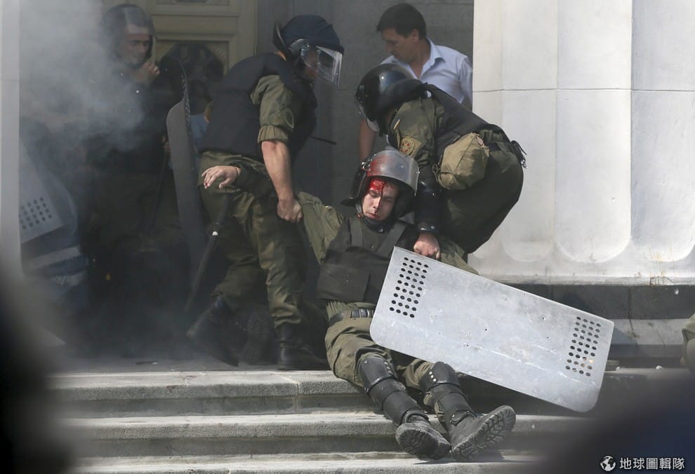 烏克蘭國會在 31號時針對下放權力給東部區域進行投票,結果國會外傳出血腥衝突,不滿政府做出這項決定的民眾集結在大樓外,接著與警察發生嚴重衝突,期間甚至有示威者丟擲手榴彈,最後造成 1名國家防衛隊員身亡,另有近百人受傷。