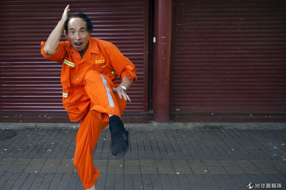 2號這天,身穿橘色制服的清道夫表演武術,臉上表情逗趣吸睛。這名清道夫所在的地方正是北京天安門廣場附近,周圍的商店全都已經暫時關門休息,因為中國為了要在 3號時要舉辦盛大的閱兵典禮,慶祝抗戰勝利 70周年,把所有的車子都趕出街上,工廠也都暫時關閉,好迎接外國來的賓客。