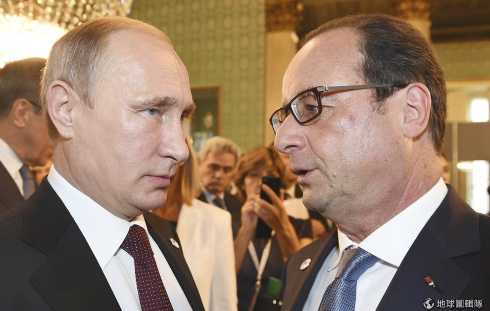 俄國總統普亭(圖左)被懷疑暗助烏克蘭反政府軍,因此被歐盟制裁,法國總統歐蘭德(圖右)表示,如果烏克蘭交戰雙方履行二月的明斯克協定,將要求歐盟解除對俄制裁。