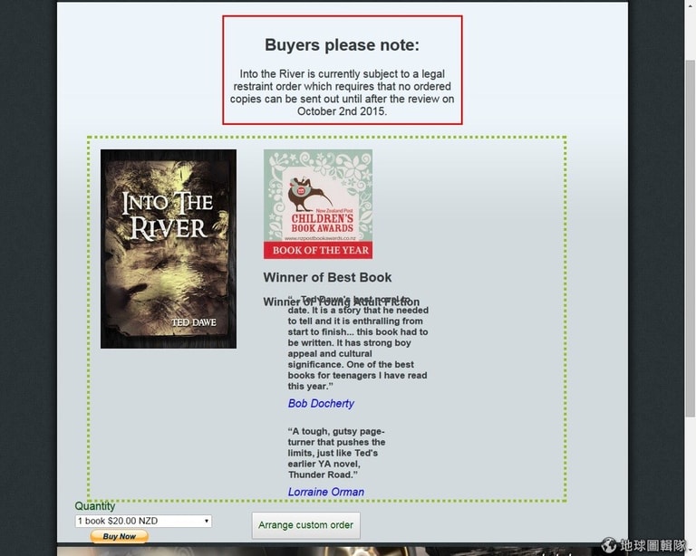 遭禁的書是作家泰德‧多爾(Ted Dawe)的《探訪河流》(暫譯,Into the River),內容大意是一位毛利族青年贏得獎學金進入到一所知名的寄宿學校,在那裡他碰上了同儕霸凌以及種族歧視等衝擊。