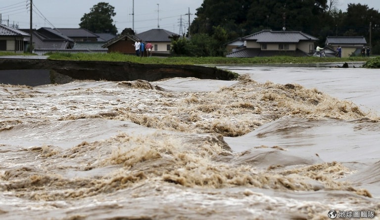 日本從 9號受到颱風「艾陶」(Etau)影響降下罕見大雨,栃木縣在短短 24小時內累積雨量高達 500毫米(註:台灣標準為超大豪雨),流經常總市的鬼怒川也傳出河水暴漲造成河堤潰堤的消息,當地回傳的影像可以見到常總市的房屋和汽車被漫漫大水淹沒。