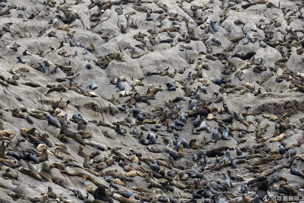 一大群密密麻麻的海獅們在卡亞俄港口外的帕羅米諾島上休息。近年來,有一些海獅因為聖嬰現象造成的高水溫而生病,海洋生物學家正在想辦法讓牠們健康起來。