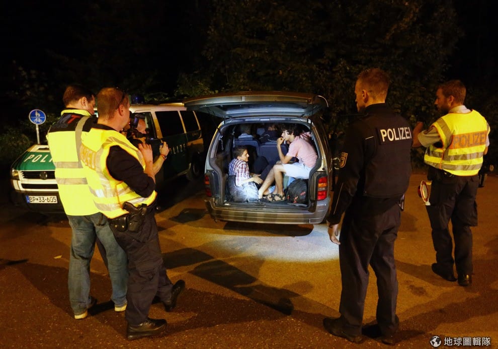 警方在一輛從薩爾斯堡開往德奧邊界的廂型車後車廂,發現數名敘利亞難民。13號這天,德國因為難民大量湧入不堪負荷,只好宣布重啟邊界管制,讓許多徘徊在邊界的難民不得其門而入。