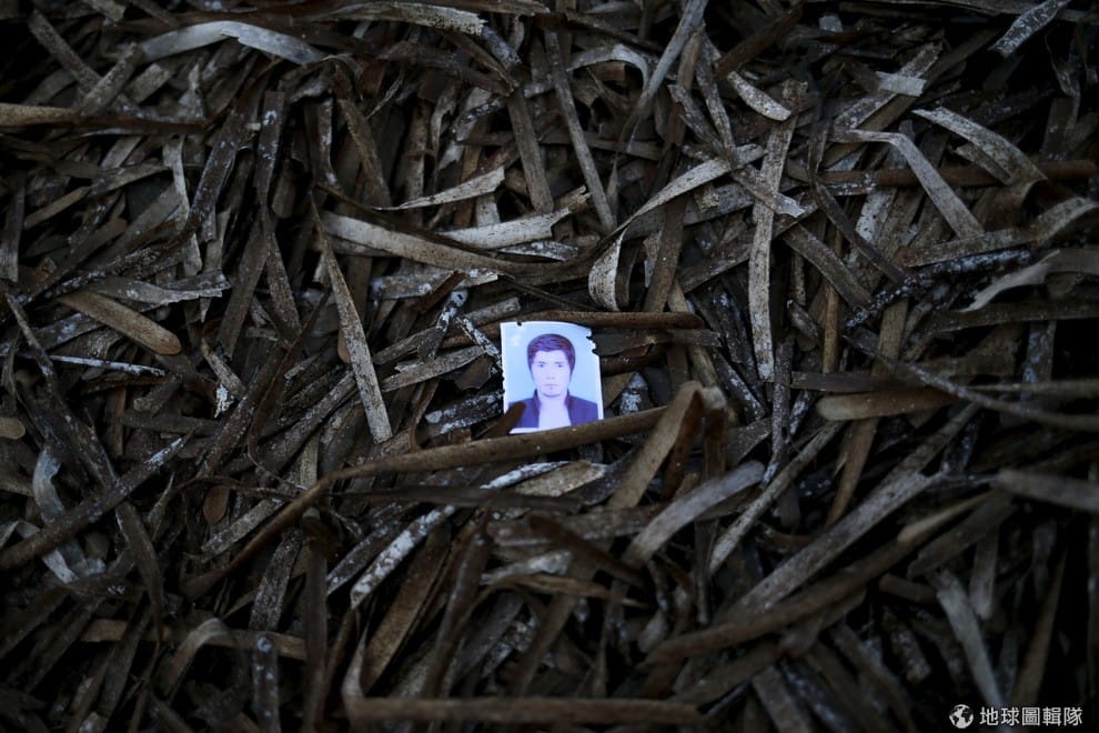 一張難民遺落的大頭照泡在希臘第三大島列斯伏斯島(Lesbos)沿岸的海草堆中。難民常常搭著危險的充氣小艇來到希臘,再途經馬其頓、塞爾維亞、匈牙利等地一路向西歐國家前進。根據國際移民組織的資料,今年為止已經有 30萬9千人通過地中海來到希臘。
