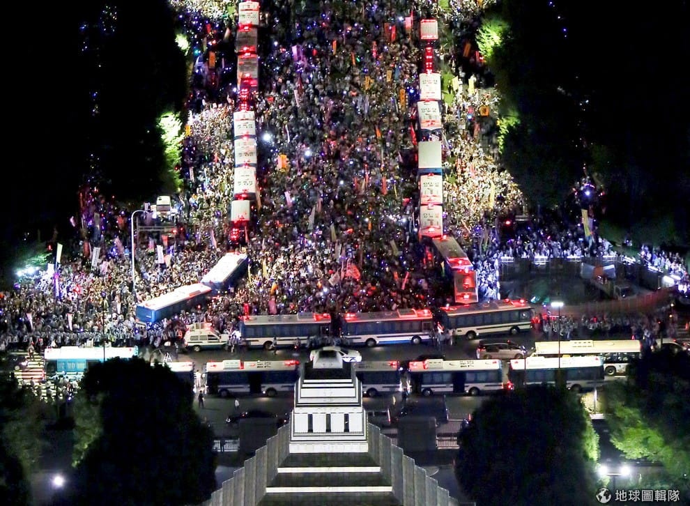 反對日本首相安倍晉三新安保法的民眾,齊聚在國會大廈前,警方為了維護現場秩序,出動好幾輛大型警用巴士圍住國會大廈,阻擋抗議民眾靠近。安倍晉三大力推動的新安保法有可能在月底通過,屆時將解禁集體自衛權,准許日本出兵海外幫忙盟友對抗敵人。