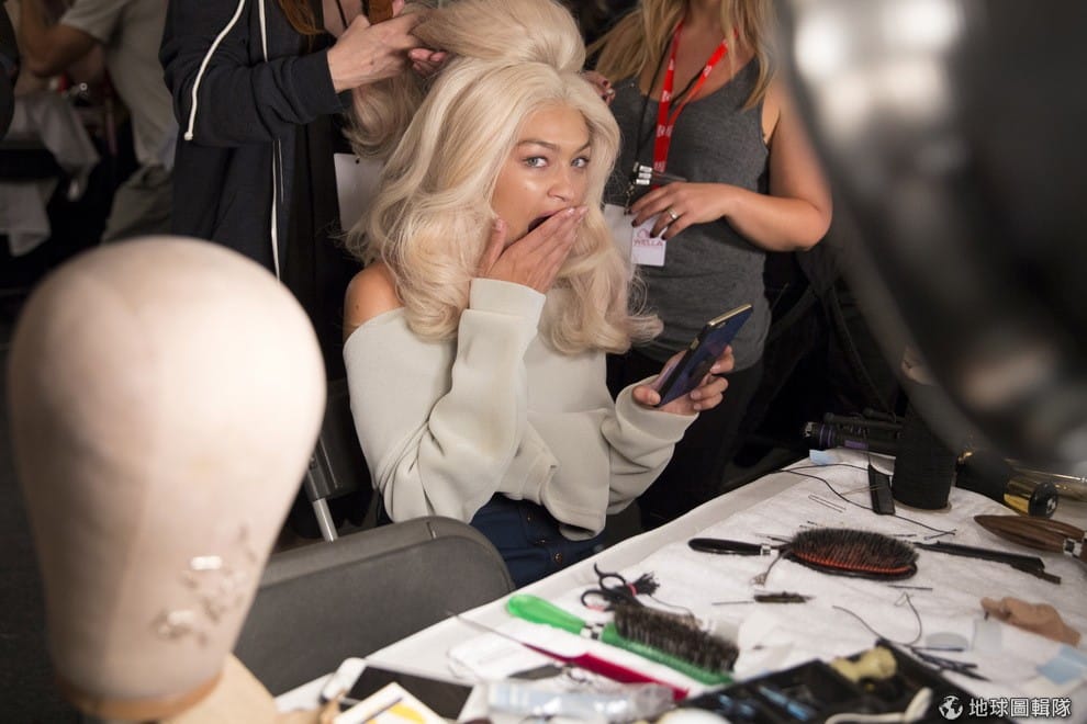 時值紐約時裝周,模特兒哈蒂德(Gigi Hadid)在後台梳化時打了個哈欠,這一幕剛好被攝影師捕捉到。哈蒂德待會將為怪誕設計師史考特(Jeremy Scott)的 2016春夏新裝走秀。