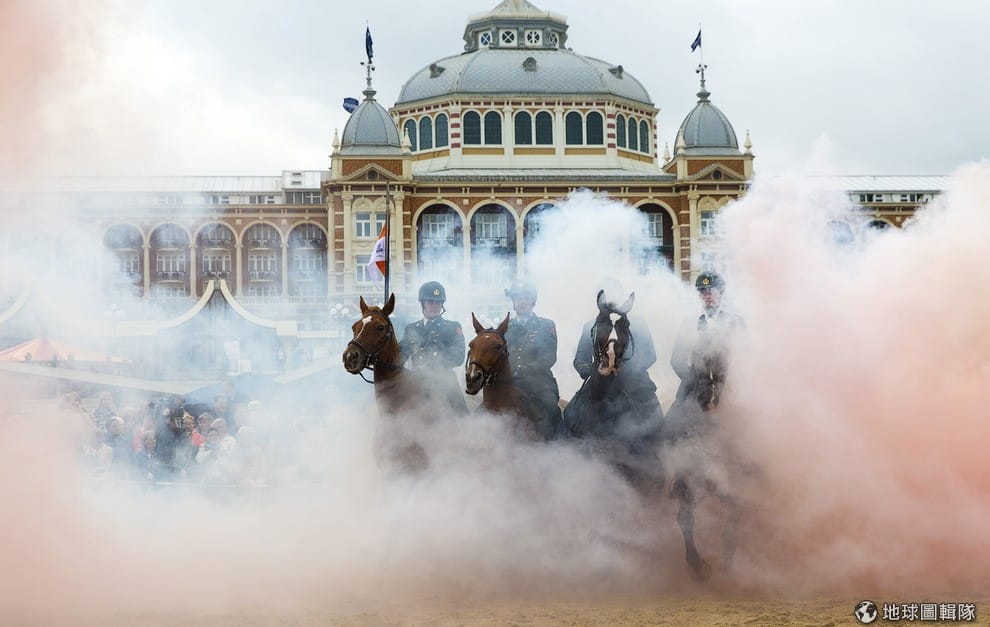 一群荷蘭皇家衛兵騎著馬從濃霧中走出,準備開始一年一度的預算展示典禮,他們的身後是盡收海景的海牙庫爾豪斯飯店。每年只有在荷蘭國家財政預算公布日這天,荷蘭皇室馬隊才會現身。