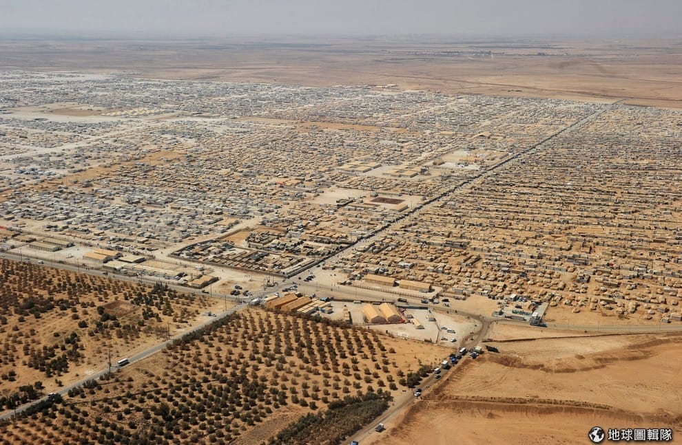 俯瞰約旦和敘利亞邊界的Zaatri難民營。
