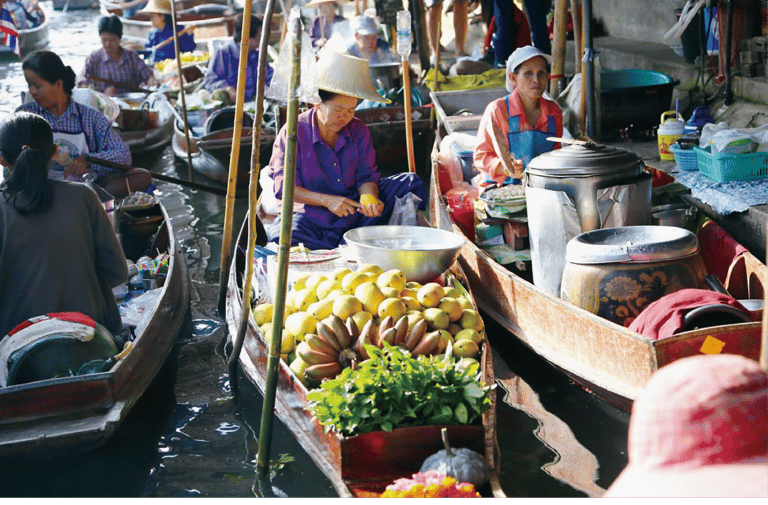攤販沿著河流做生意,發展出多個日常生活所需的水上市場,在大部份河道都被填平以興建街道的今天,仍保留不少傳統的水上市場,丹能莎朵水上市場便是其中之一。
