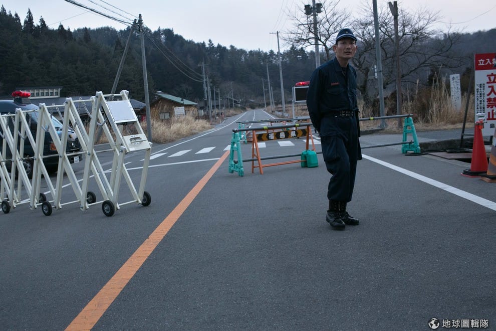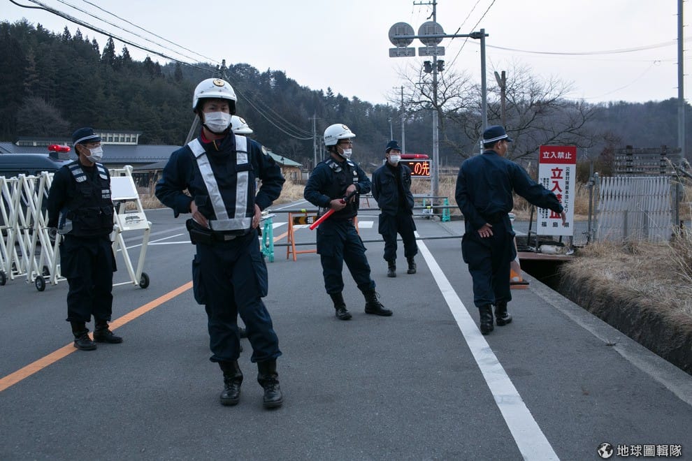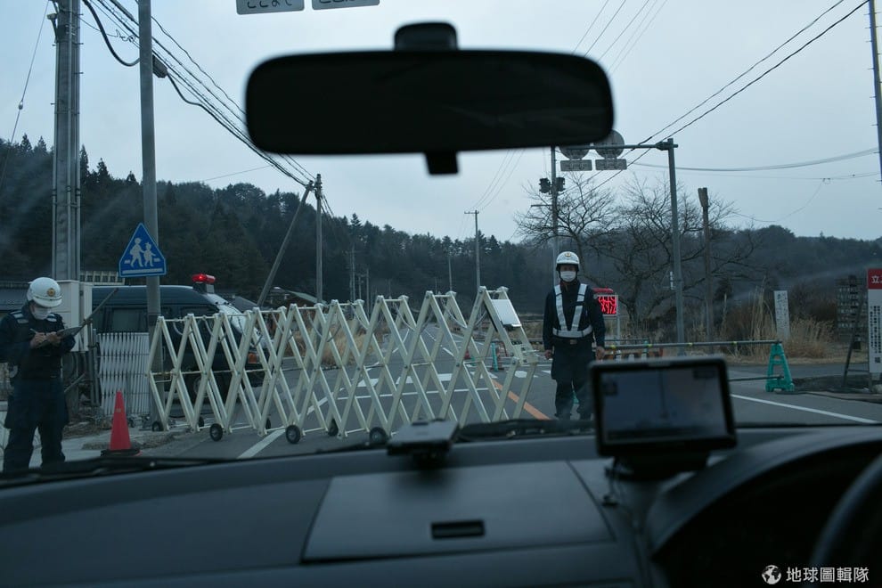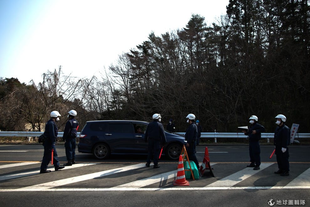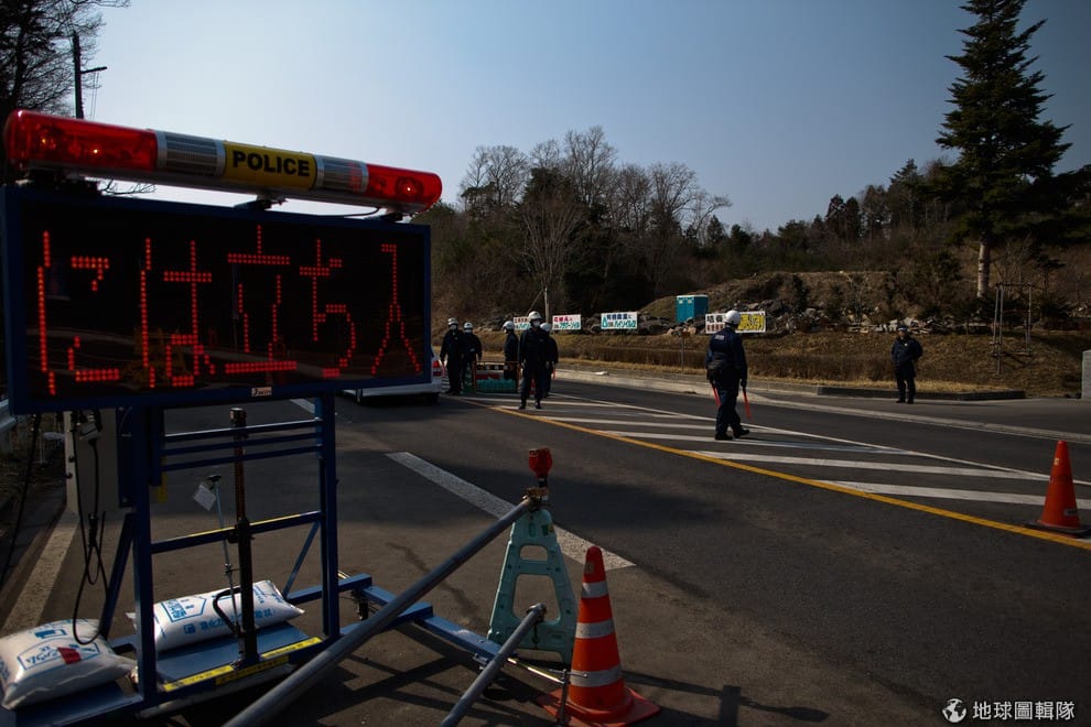 進入浪江町前的崗哨。2011東北大地震發生後,福島第一核電廠發生外洩危機,就在附近的浪江町籠罩在輻射外洩的危機中,這邊甚至在海嘯發生1個月後,搜救隊仍不能進入。Ken Ishii/Getty Images