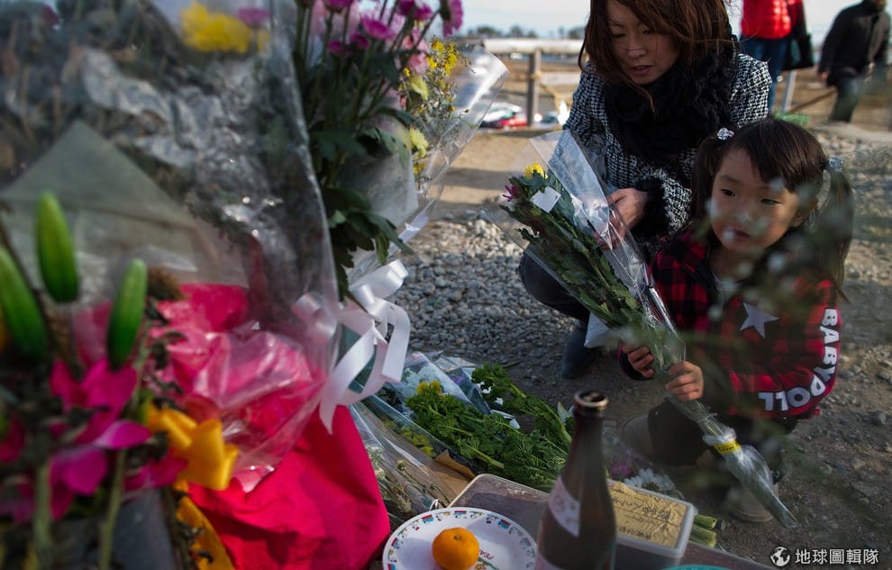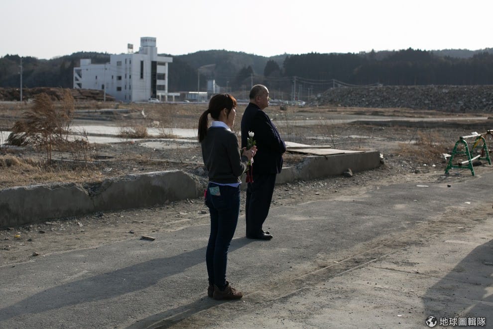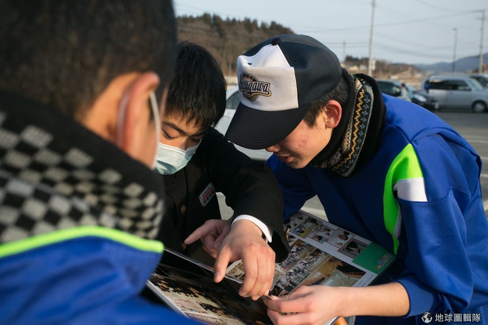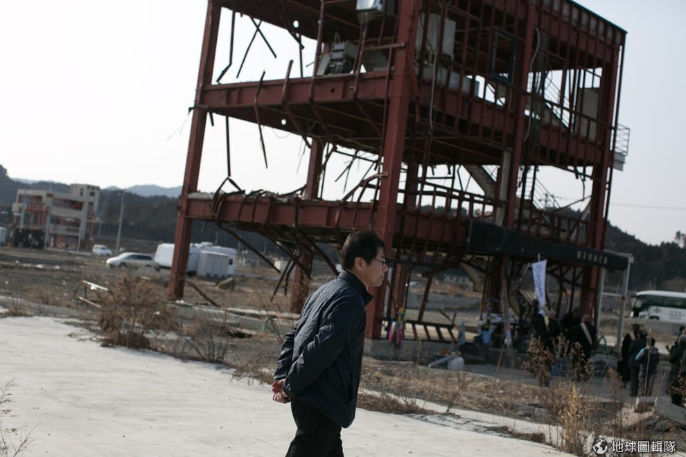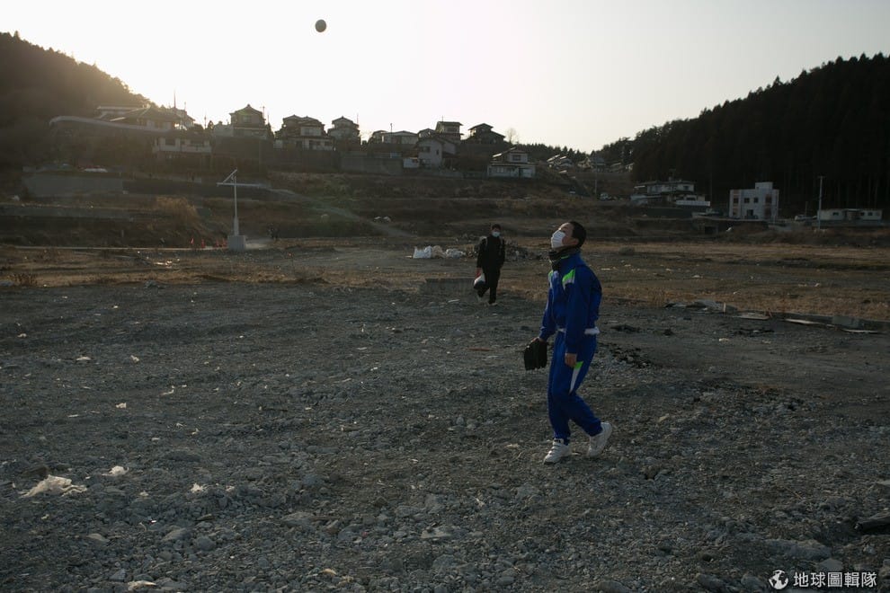 照片中是福島縣得靠海地區「南三陸町」,這個小鎮有95%因16公尺高的海嘯重創幾乎全毀,當地建物幾乎無一倖免,市鎮居民有半數以上死亡或失蹤,在2011年的海嘯災難中,光是這個市鎮的傷亡人數就佔總傷亡人數相當大的部分。照片中的佐藤正在跟同學玩球,他們的家園就是在南三陸町。Ken Ishii/Getty Images