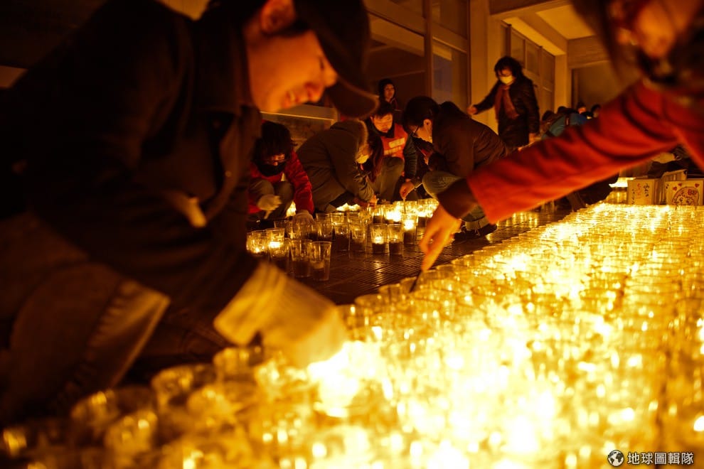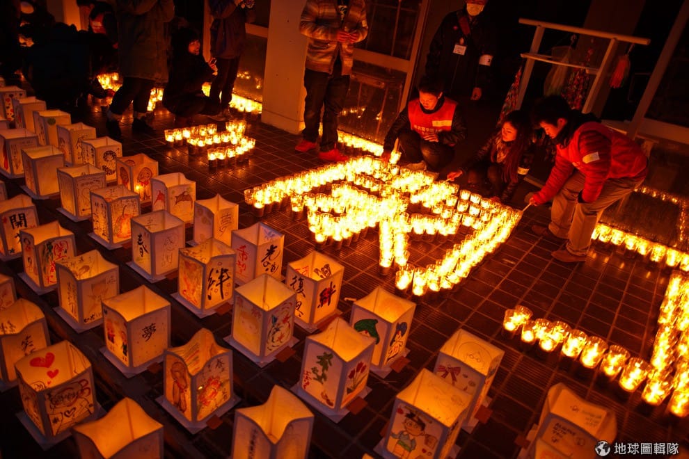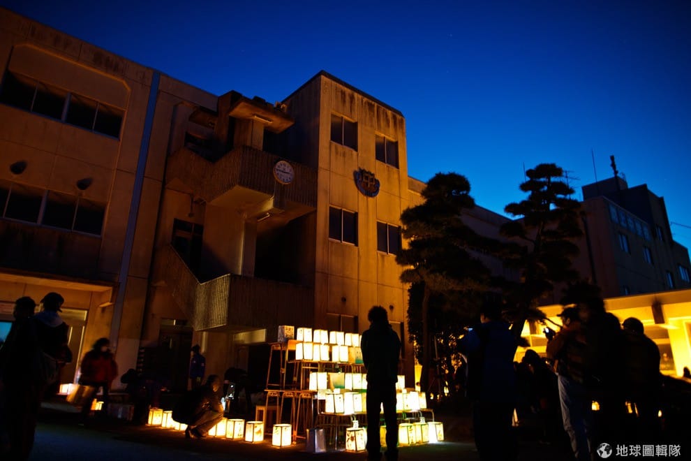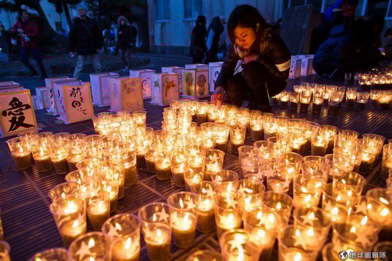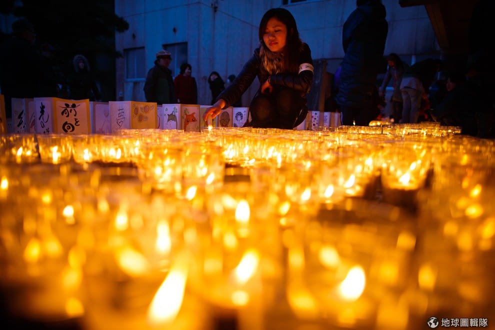 名取市當地的學校,在311兩周年前夕聚滿了致意的學生和居民,她們點起燭光一起守夜。 Athit Perawongmetha/Getty Images
