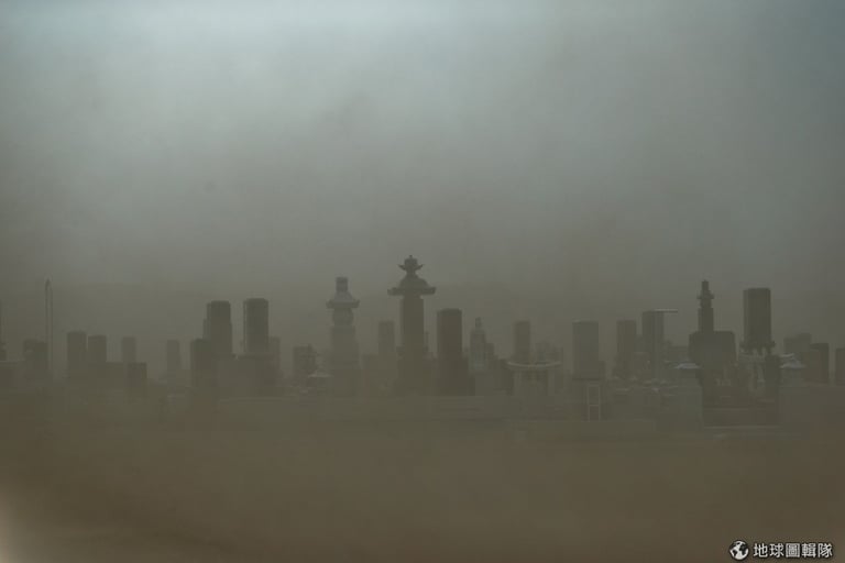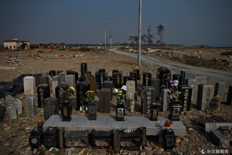 距離福島核災發生現場約20公里的「小高町」市,當地的墓園被煙塵籠罩。Athit Perawongmetha/Getty Images)