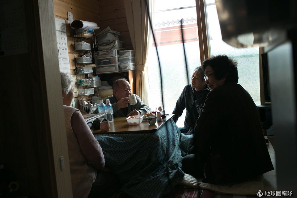 木村先生(左2)跟鄰居們聊天。Ken Ishii/Getty Images