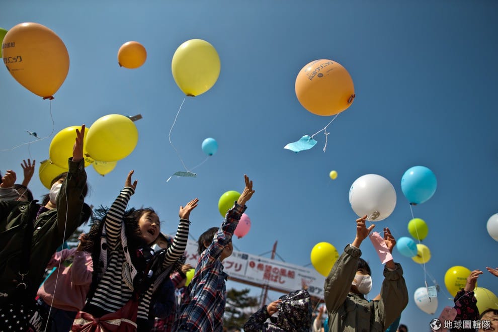 南相馬市的孩子放起紀念氣球。Athit Perawongmetha/Getty Images