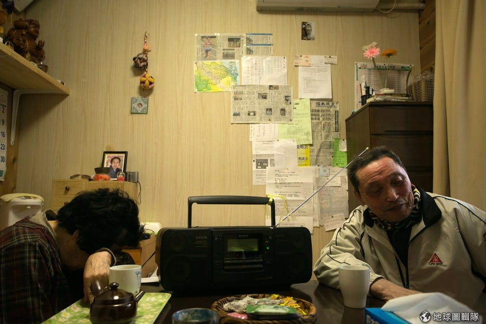 照片中是三平夫婦,他們同樣是被迫遷出家園的來到本宮市的災民。Ken Ishii/Getty Images。