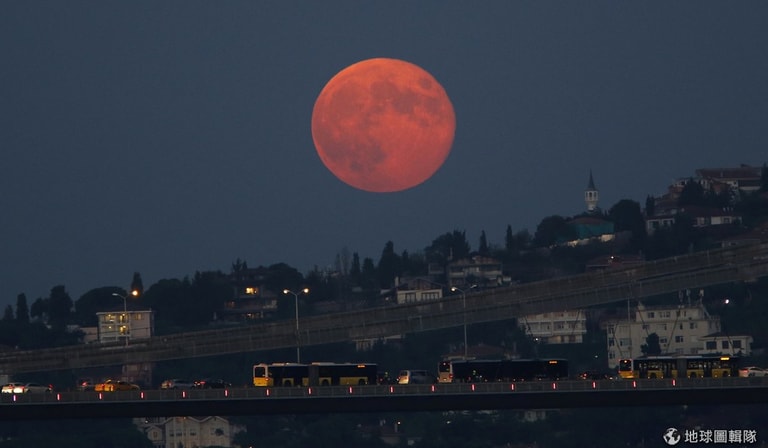 今年中秋恰好碰上天文界難得的超級月食,預計中歐、非洲、美洲等地的民眾能見到罕見的景象。台灣民眾則要等到 2033年才有機會觀賞。圖為土耳其伊斯坦堡在 2014年見到的超級月亮。