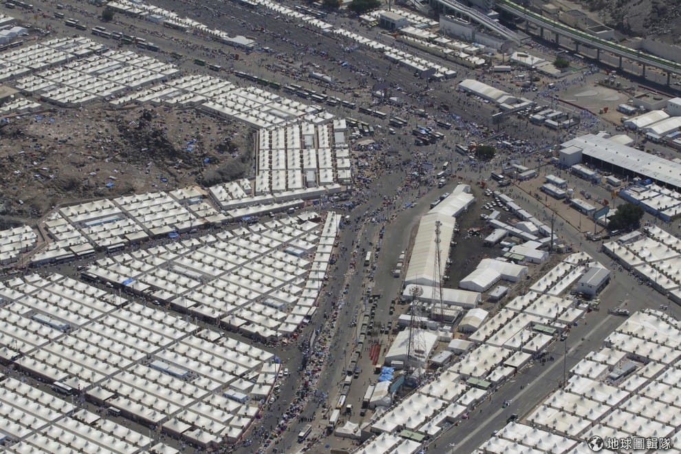 從高空俯瞰米納,可以發現一排又一排整齊的白色帳篷,裡面住著來自世界各地的穆斯林,每年人數都超過百萬。