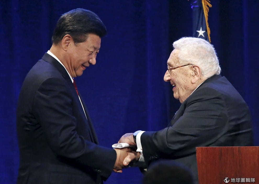 中國領導人習近平(圖左)和美國前國務卿季辛吉(Henry Kissinger)在西雅圖晚宴上相見歡。近日,中國領導人習近平出訪美國,除了和美國總統歐巴馬(Barack Obama)見面外,他也與商界和科技業鉅子見面,包含微軟創辦人比爾蓋茲(Bill Gates)、臉書CEO馬克祖克柏(Mark Zuckerberg)等都出現在習近平的會面名單上,中國 13億人口的龐大市場讓美國趨之若鶩,此外,這也是習近平第二次以中國領導人的身分出訪美國。