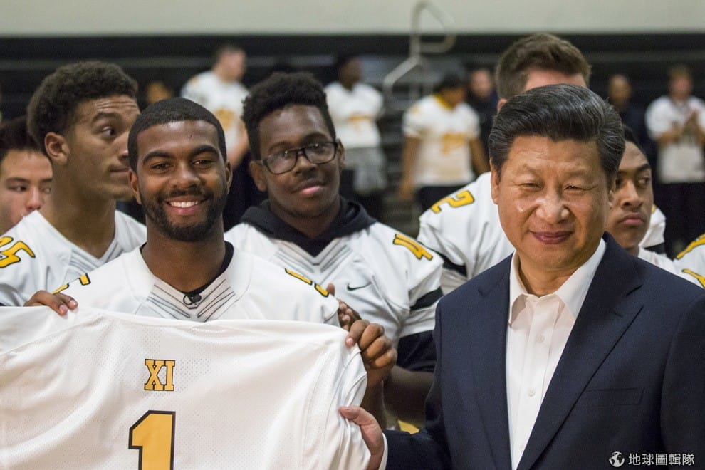 林肯高中的學生送上寫有 1號和習近平姓氏Xi字樣的球衣。