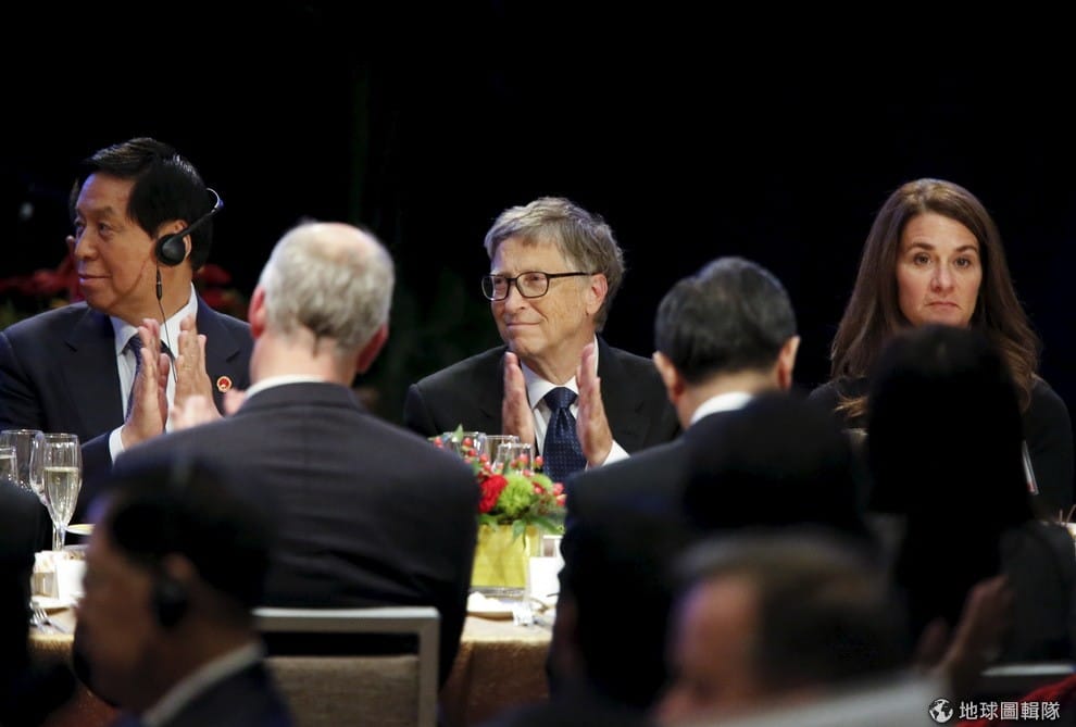 24號時,習近平與美國的企業家們見面,圖為「中美企業家論壇」的現場,可以見到微軟創辦人比爾蓋茲(中)和太太梅琳達(右)一同出席。