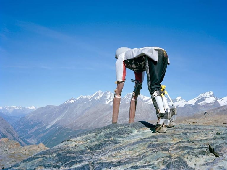 塔提斯到瑞士阿爾卑斯山的一座農場裡,待在羊群之中生活了 3天,他用仿造的羊腳在農場裡小跑步,但是他發現,靠著四隻腳生存的生活真的不容易,塔提斯說:「最主要的困難是長時間用你的四肢承受自己的重量…我們(的身體)天生不是用來這麼做的。」