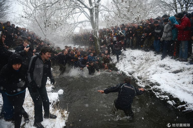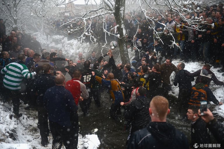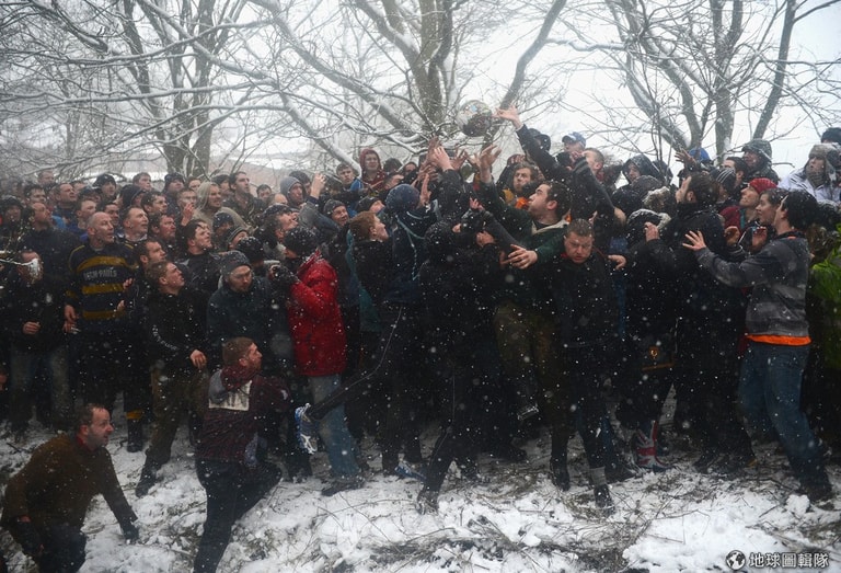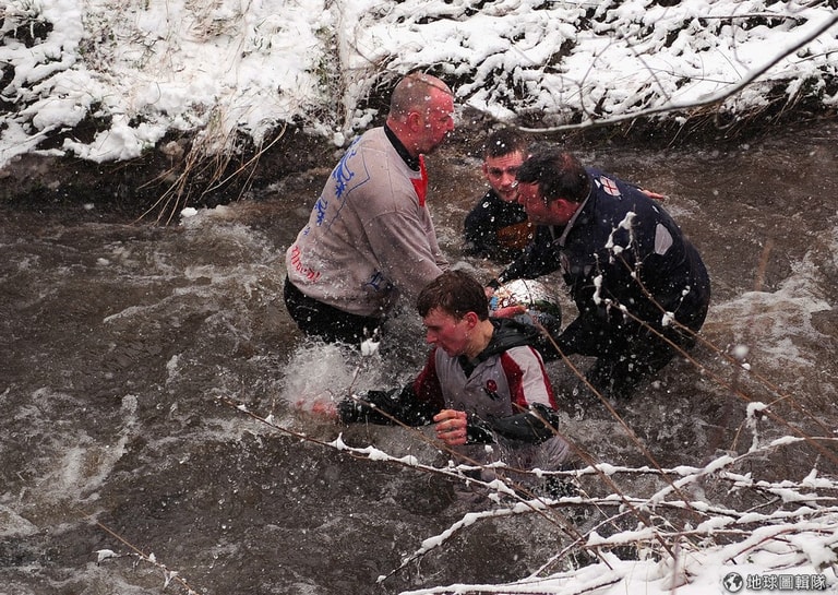隊伍的區分,簡單來看就是用「居住地」來分,若你住在當地的漢摩爾河北邊,那你就是「上城隊」,若住在河岸南邊,就是「下城隊」;兩天的競賽中,每天下午2點到晚上10點就是賽程時間,若是有任一隊在5點前先馳得點的話,則球局又會重啟。Michael Regan/Getty Images
